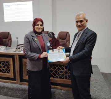 Prof. Sabah Qasim Khalaf, Dean of the College, welcomed Prof. Suhail Najm Abdullah, Assistant President of the University of Baghdad for Scientific Affairs, to attend the training course organized by the Directorate of Studies, Planning, and Follow-up at the Ministry of Higher Education and Scientific Research. The course was held in the auditorium of the College of Physical Education and Sport Sciences and focused on implementing the Bologna Process in Iraqi universities for the 2024/2025 academic year and the following academic year.