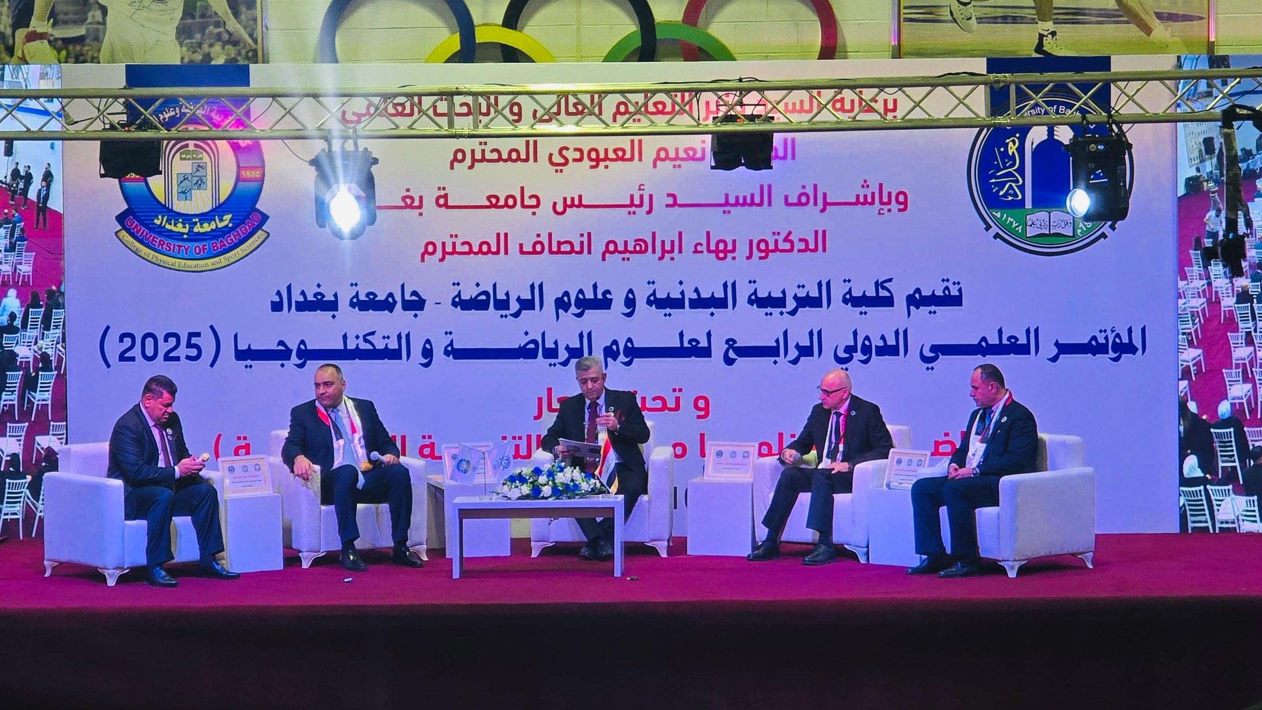 Under the patronage of His Excellency Dr. Naeem Al-Aboudi, Minister of Higher Education and Scientific Research, and the supervision of Professor Dr. Baha Ibrahim Ensaf, President of the University of Baghdad, the College of Physical Education and Sport Sciences inaugurated the 4th International Scientific Conference on Sports Sciences and Technology for Sustainable Development on Thursday, April 10, 2025. The conference, held under the theme “Sports and Technology for Sustainable Development,” will run through April 12, 2025.