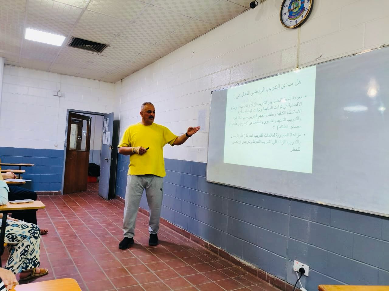 On Monday, April 21, 2025, the Department of Theoretical Sciences held a workshop entitled Principles of Effective Sports Training, delivered by Prof. Ammar Darwish Rasheed. The workshop addressed the principles of effective training by introducing key questions as a prelude to the topic, focusing particularly on the physiological response to exercise and the specific performance demands it involves—whether physical, motor, skill-based, tactical, or psychological—based on the unique functional characteristics of each physiological response.