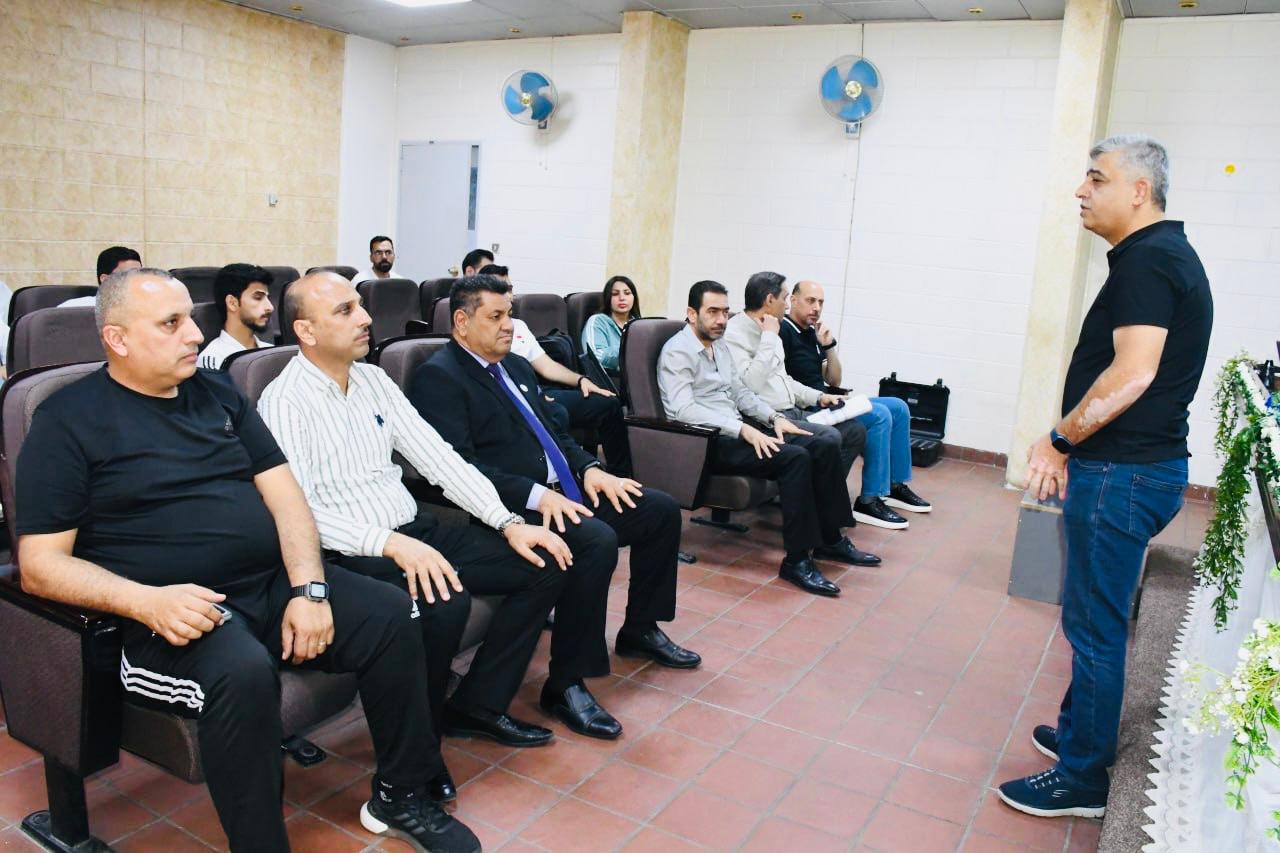 The lecture was delivered by Prof. Dr. Osama Ahmed Hussein, Professor of Exercise Physiology at the College of Physical Education and Sport Sciences, University of Baghdad, and Assistant Lecturer Ismail Hameed Saleh from the same university.