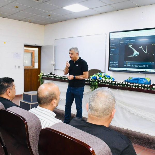 Prof. Dr. Sabah Qasim Khalaf, Dean of the College of Physical Education and Sport Sciences at the University of Baghdad, along with members of the College Council and several faculty members, attended an applied scientific lecture for PhD students. The session featured advanced practical applications of tests related to the muscular and neuromuscular systems.