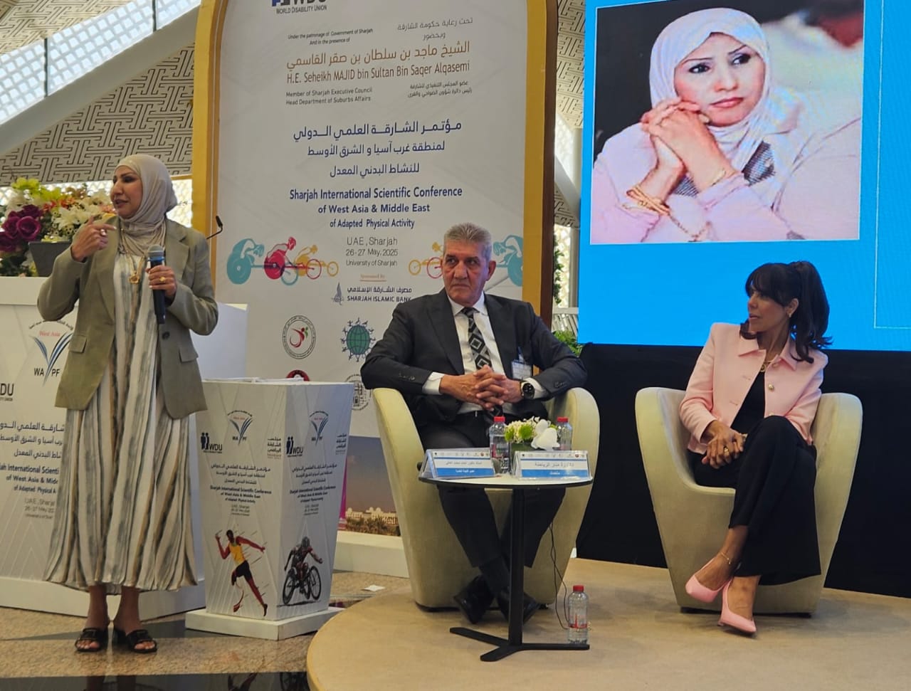 Two faculty members from the College of Physical Education and Sports Sciences at the University of Baghdad—Prof. Ahmed Mohammed Ismail, Executive Board Member of the Iraqi National Paralympic Committee representing Iraq, and Prof. Iman Abdul Ameer—participated in the Sharjah International Scientific Conference for the West Asia and Middle East Region on Adapted Physical Activity, held from May 26–27, 2025, in the Emirate of Sharjah, United Arab Emirates.