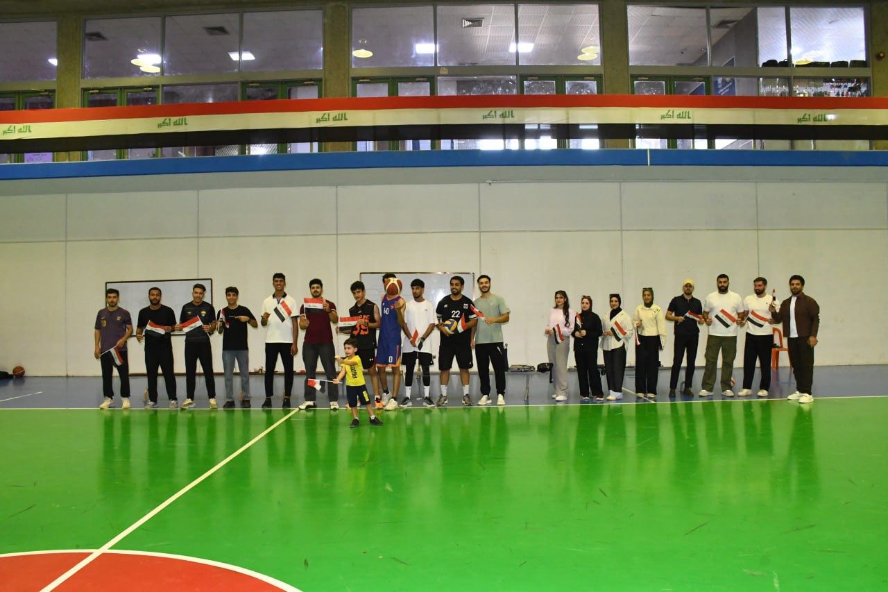 On the occasion of the Iraqi National Day celebrations, the College of Physical Education and Sports Sciences at the University of Baghdad organized a special sports event featuring a friendly basketball match between master’s and doctoral students. The atmosphere was filled with enthusiasm, teamwork, and a strong spirit of unity.