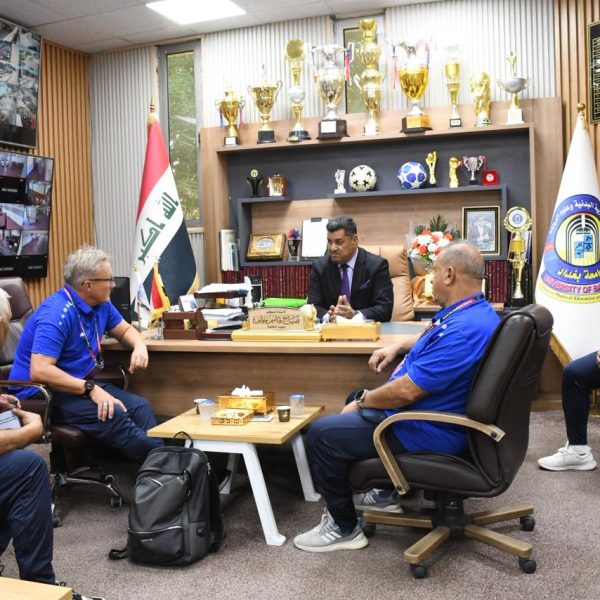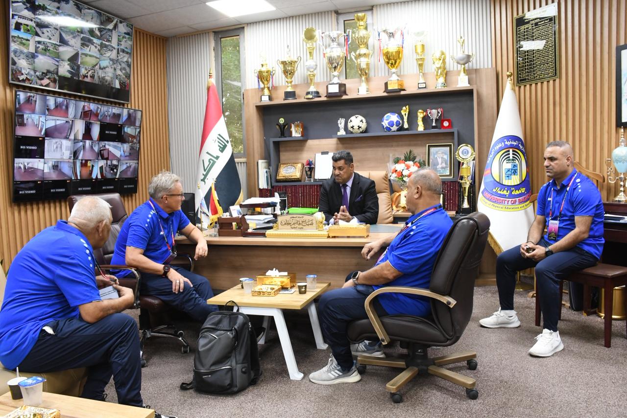 The meeting discussed prospects for joint cooperation in organizing workshops and advanced training courses, as well as the potential for hosting international scientific forums that contribute to the development of modern football philosophy. The Dean affirmed that the college remains open to hosting activities and programs that serve the progress of Iraqi sports.