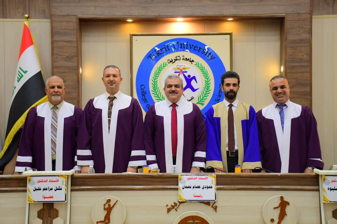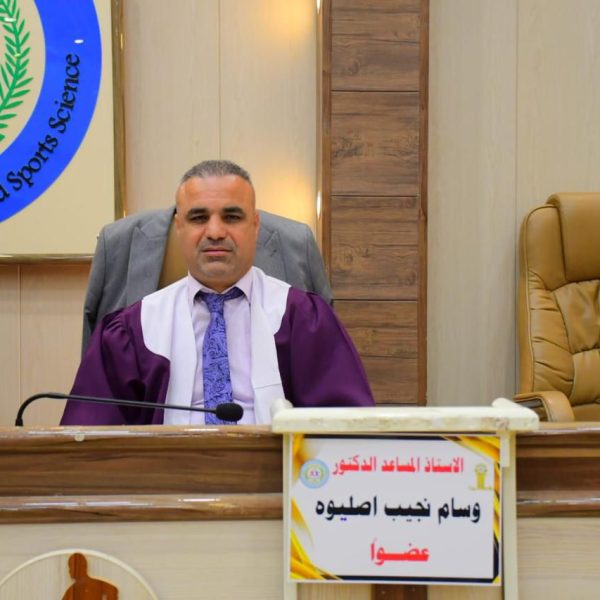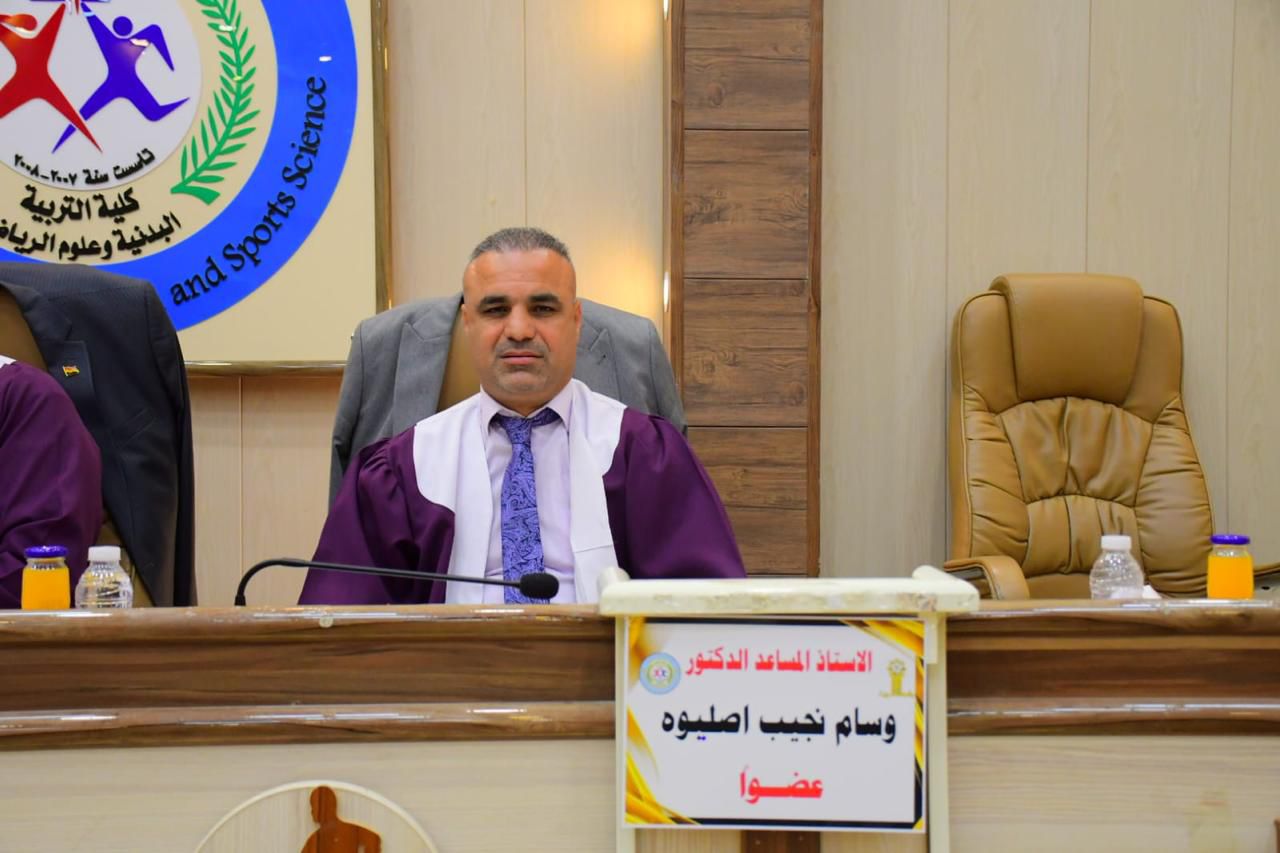 Dr. Wissam Najib Asliwah, a faculty member at the College of Physical Education and Sports Sciences, University of Baghdad, participated in the defense of a master’s thesis at the College of Physical Education and Sports Sciences, University of Tikrit. The thesis, presented by student Ahmed Majeed Hameed, was titled “The Effect of Psycho Exercises with Varied Phosphagenic and Lactic Loads on Some Biochemical Indicators and the Physical and Skill Abilities of Youth Football Players.”