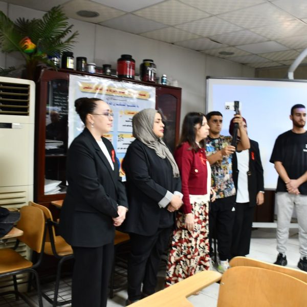 As part of the awareness programs adopted by the College of Physical Education and Sports Sciences at the University of Baghdad, the English Scientific Group organized an awareness exhibition titled “Say No to Drugs” on Monday (17/11/2025). The event was attended by the Dean of the College, Prof. Sabah Qasim Khalaf, the scientific and administrative assistant deans, the Head of the Theoretical Sciences Branch, the College Council Secretary, the Head of the Educational Guidance Division at the University of Baghdad, the Head of the Educational Guidance Unit in the college, in addition to a number of faculty members and students.