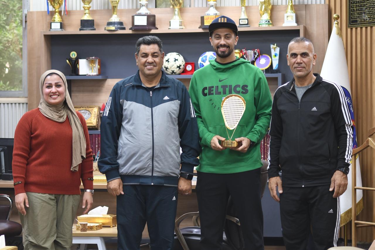 The Dean of the College of Physical Education and Sports Sciences at the University of Baghdad, Prof. Sabah Qasim Khalaf, honored faculty member Assistant Lecturer Hasnain Ubaid Dakhil in recognition of his outstanding sporting achievement in winning the Qatar Professional Squash Championship title for 2025.