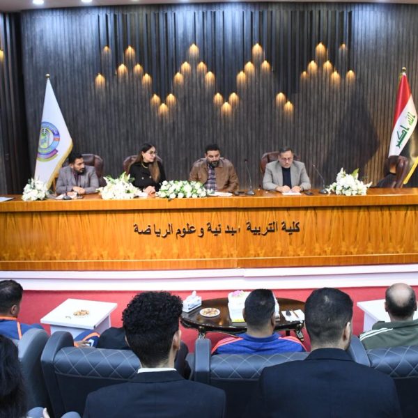 The College of Physical Education and Sports Sciences at the University of Baghdad held discussions of Master’s students’ research papers for the Physiology course, in the presence of the Dean of the College, Prof. Sabah Qasim Khalaf, along with a number of specialized professors and faculty members.