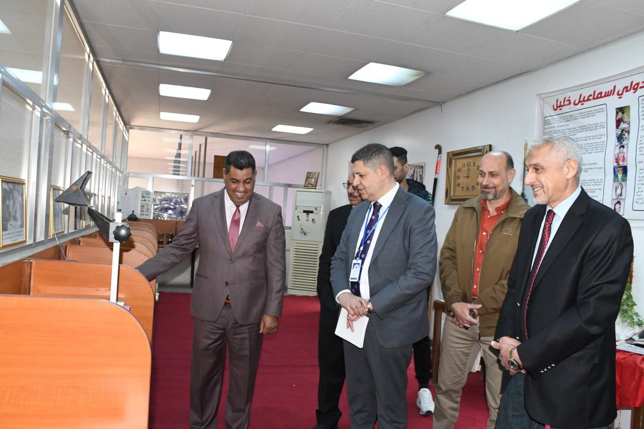 The committee was welcomed by the Dean of the College, Prof. Sabah Qasim Khalaf, along with a number of academic and administrative staff members. An introductory presentation was delivered, highlighting the college’s academic programs, development plans, infrastructure, and the available scientific and sports facilities.